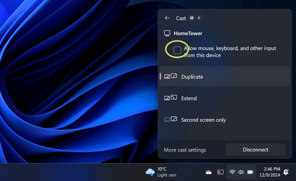 - On the source device, use the shortcut Windows key + K to launch Miracast.