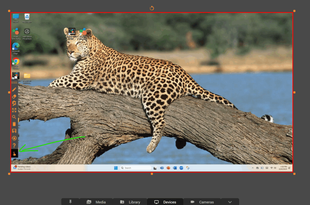 - Select the touchback setting on the toolbar at the bottom. The red outline indicates touchback is enabled and the window is pinned.