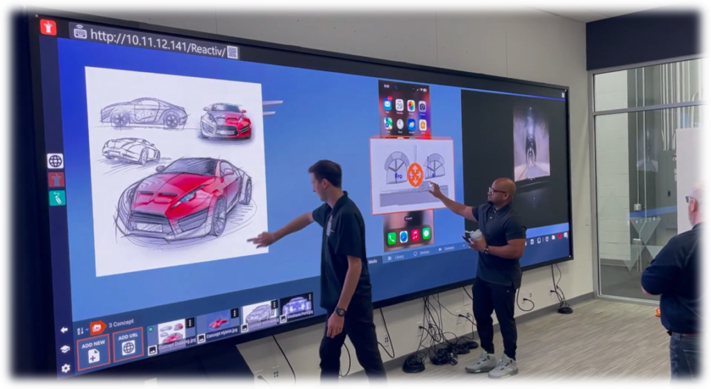 Additionally, Reactiv SUITE WALL natively supports a variety of peripheral devices. Multiple microphones, cameras, projectors and various secondary displays can be managed, configured and supported directly within the software. WALL provides the ability for a multitude of personal in-room devices, from laptops and phones, to share their screens, drop files and folders and even download content used in a Reactiv presentation.